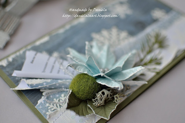 Албумчето е размер А5 и също е рисувано, така че да подхожда на паното.На лицето и гърба са добавени цветя от релефна паста, рисувани цветя и капчици роса.